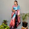 Spread the aura of freshness with this Satin Silk saree. This saree is made of Japan Satin Silk fabric which is highlighted with beautiful Digitally printed work which makes this saree more elegant. This Satin silk saree is versatile, light-weight, extremely soft. This Satin Saree manufactured using the ‘Satin’ weave, giving it a smooth, shiny, lustrous surface. This saree is paired with unstitched matching Bangalori Silk fabric blouse piece which can be stitched as per your requirement. This saree is comfortable to wear and care. You can wear this saree for regular social meets and other homely events. Pair it with stylish accessories to complete the look.