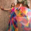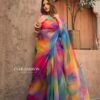 Trending Light Weight Yellow Color Organza Multicolor Printed Saree. The Material is light weight and is digitally printed. Saree Length is 5.5 meters and blouse is 1 meter and comes with Tussles. Perfect for summer wear.