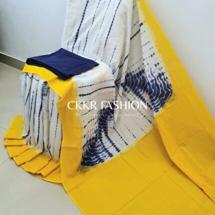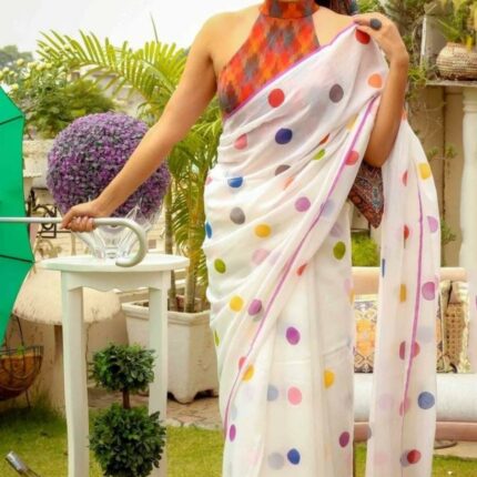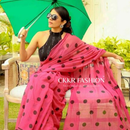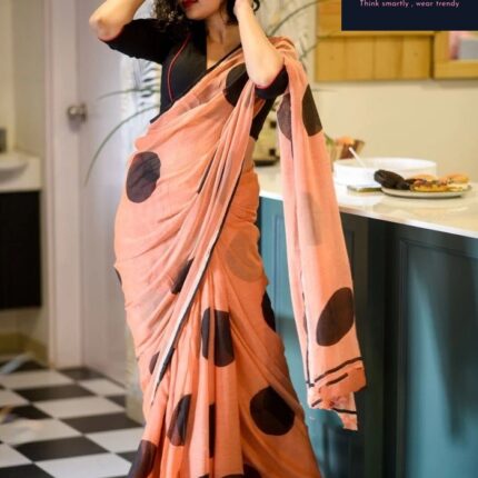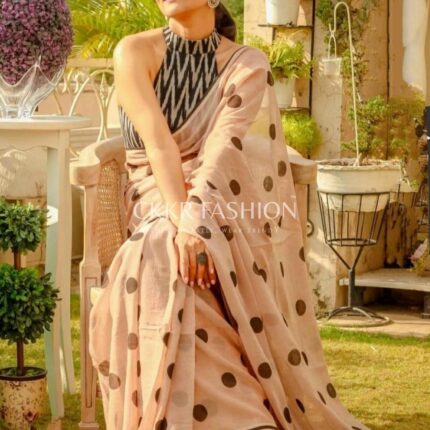 LINEN COTTON SAREE-YELLOW POLKA DOTS