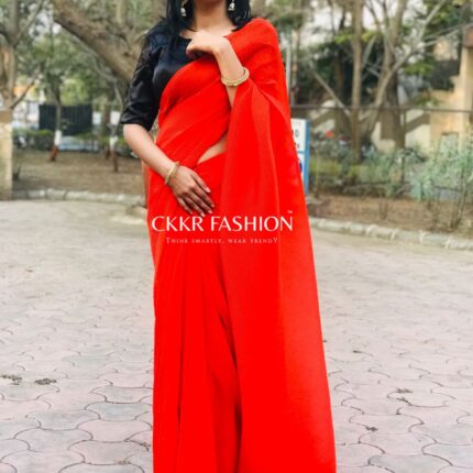 RUFFLE SAREE-RED
