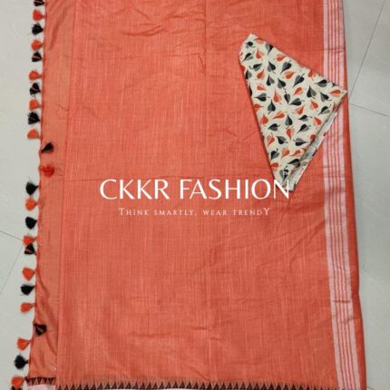 LINEN COTTON SAREE-ORANGE POLKA DOTS