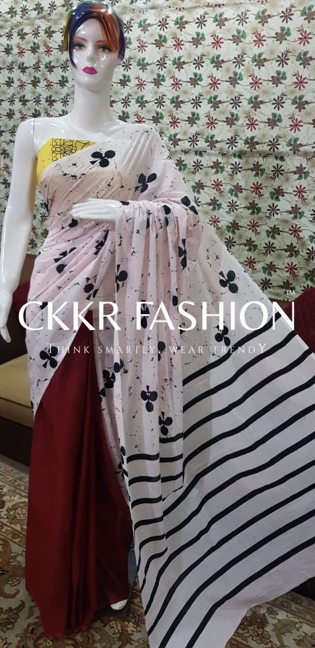 Batik Cotton Saree is designed for modern women who constantly seek for new ways to update their style and love to follow contemporary fashion trends. Make your day more beautiful with this Batik Cotton Saree. It comes in a beautiful color and features a beautiful pattern, which gives it a very modern look. Made of superior quality Mul Mul Cotton, this saree is so smooth and comfortable to wear. Its lightweight fabric makes it perfect for any occasion.