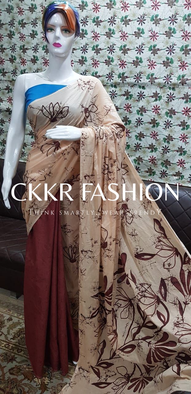 Batik Cotton Saree is designed for modern women who constantly seek for new ways to update their style and love to follow contemporary fashion trends. Make your day more beautiful with this Batik Cotton Saree. It comes in a beautiful color and features a beautiful pattern, which gives it a very modern look. Made of superior quality Mul Mul Cotton, this saree is so smooth and comfortable to wear. Its lightweight fabric makes it perfect for any occasion.
