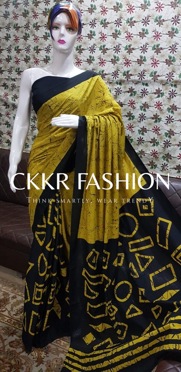Batik Cotton Saree is designed for modern women who constantly seek for new ways to update their style and love to follow contemporary fashion trends. Make your day more beautiful with this Batik Cotton Saree. It comes in a beautiful color and features a beautiful pattern, which gives it a very modern look. Made of superior quality Mul Mul Cotton, this saree is so smooth and comfortable to wear. Its lightweight fabric makes it perfect for any occasion.
