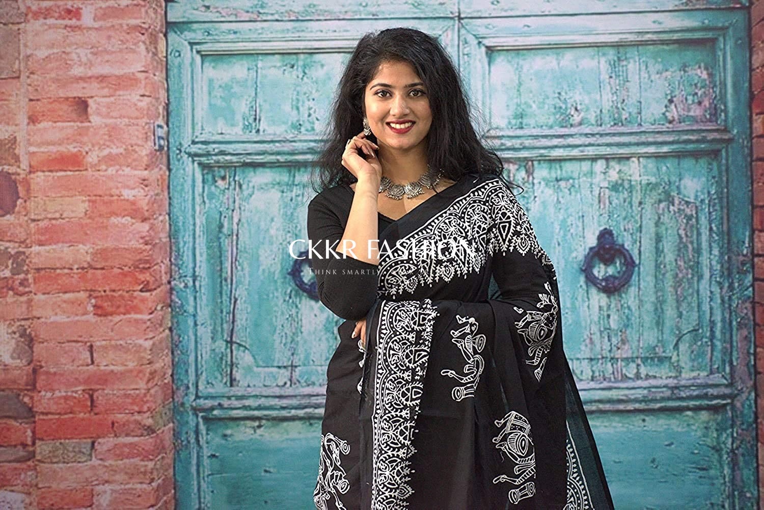 New Batik Design, Unique Print and Design Perfect for any occasion, This saree can be worn at office, party or any function, Unique print, made of mul mul cotton, with blouse (unstitched), this saree is hand washable and length of saree is 5.5 mtr (6 yards) with blouse piece of 0.80 mtr. and width of saree is 110 cm. It quality product and cotton is pure. Adds Elegance to your wardrobe.
