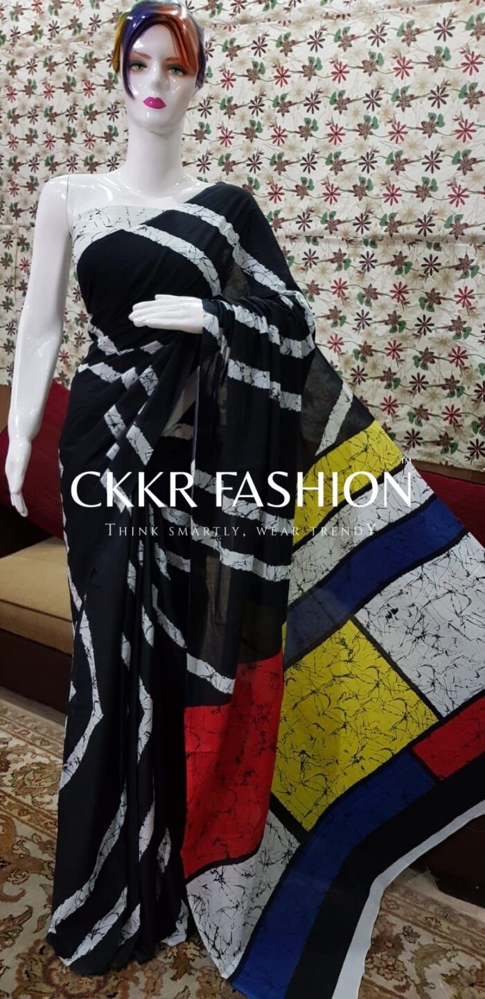 Batik Cotton Saree is designed for modern women who constantly seek for new ways to update their style and love to follow contemporary fashion trends. Make your day more beautiful with this Batik Cotton Saree. It comes in a beautiful color and features a beautiful pattern, which gives it a very modern look. Made of superior quality Mul Mul Cotton, this saree is so smooth and comfortable to wear. Its lightweight fabric makes it perfect for any occasion.