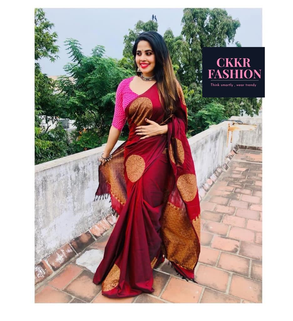 New attractive design, beautiful rich Pallu & Jacquard work on all over the Saree, Blouse :contrast exclusive Jacquard Border, Saree fabric-cotton silk, Blouse material -contrast with Jacquard Border, Saree length-5.6Mtr, Blouse length- 80 cm