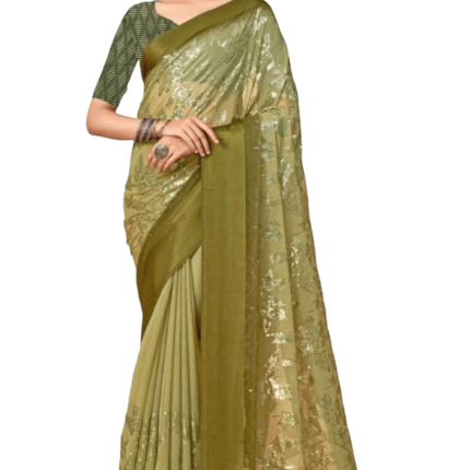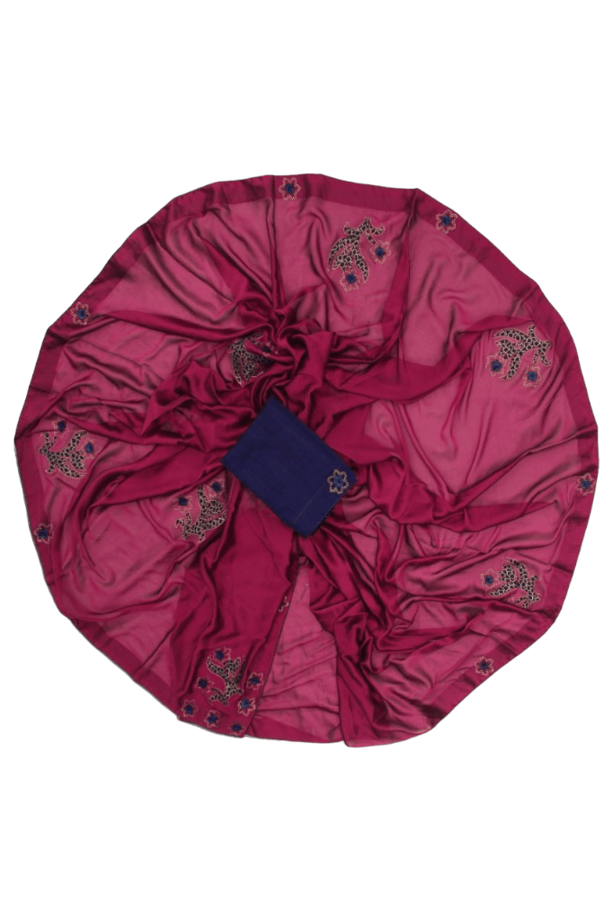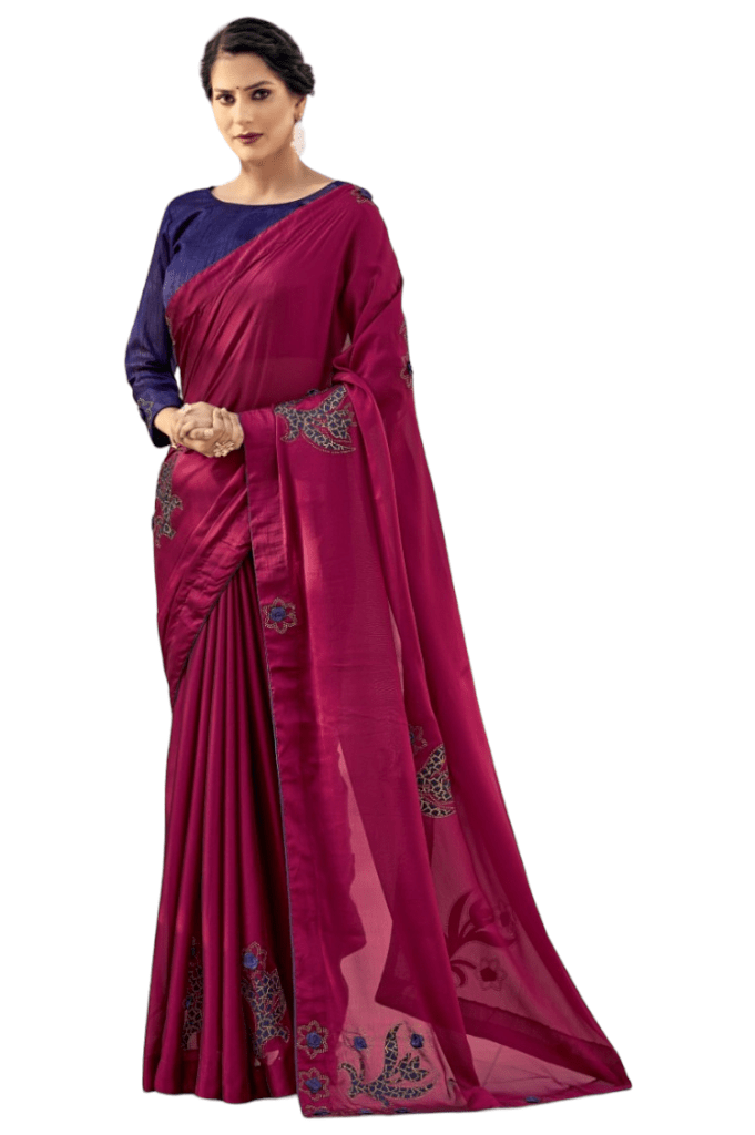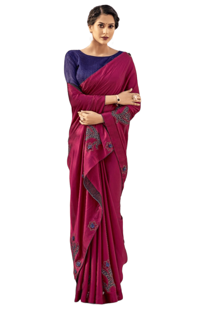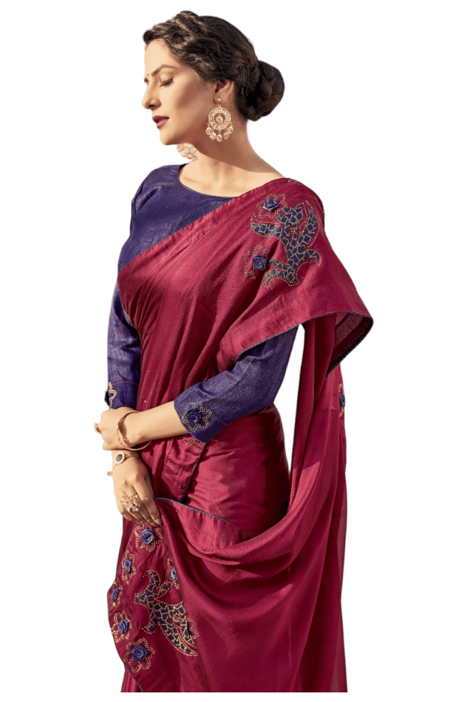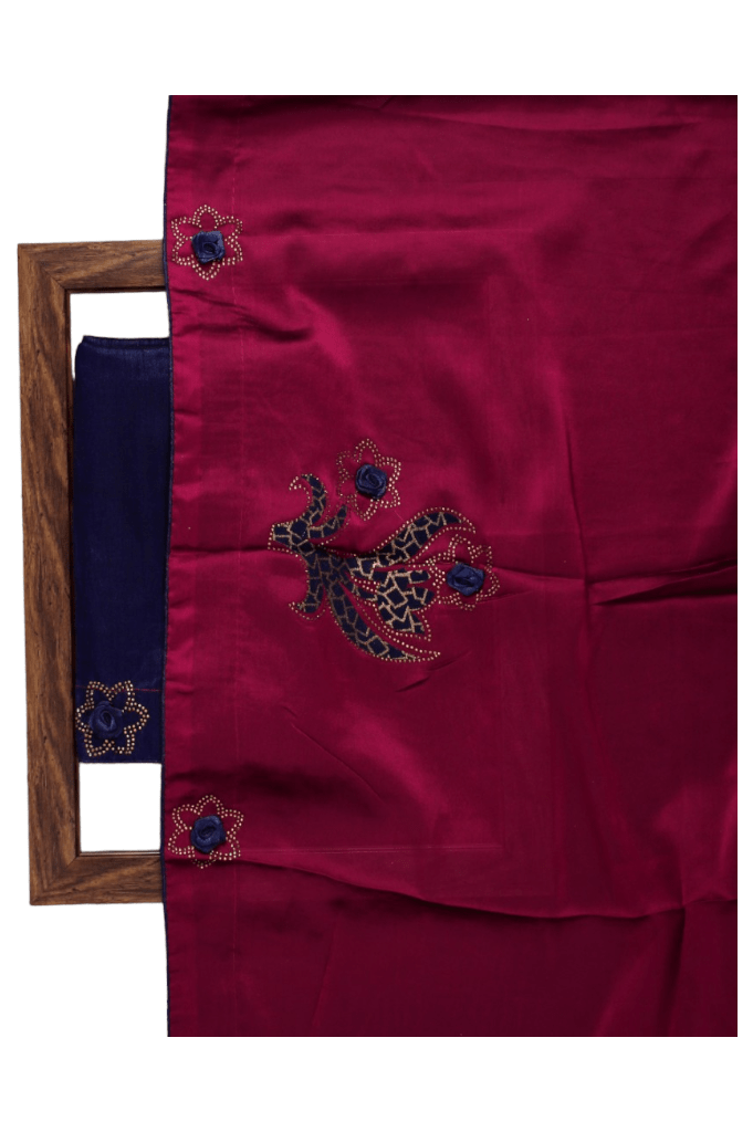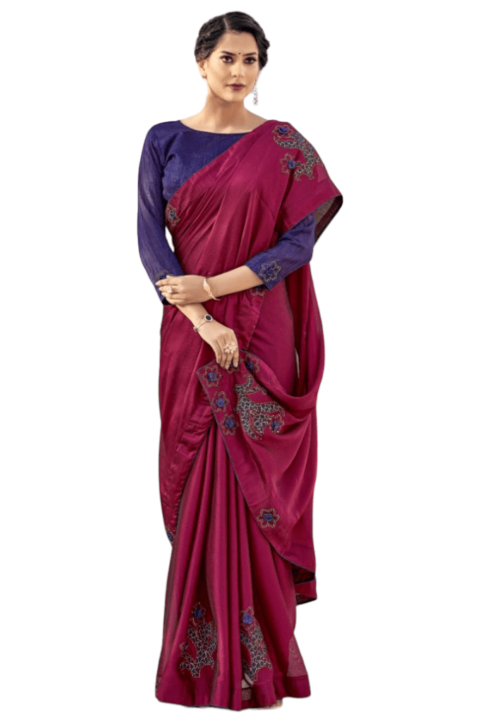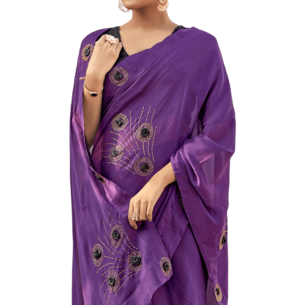SILK FABRIC SAREE WITH CUT PATCH FLOWER BUTTAS (EMBROIDERY) WITH SWAROVSKI DIAMOND AND BLOUSE.