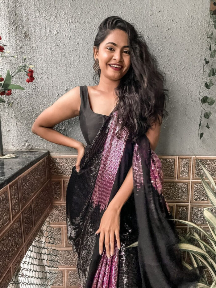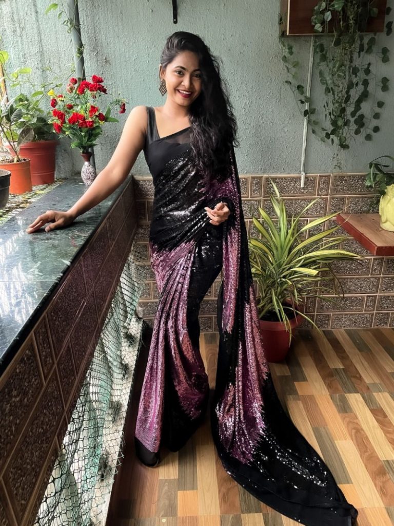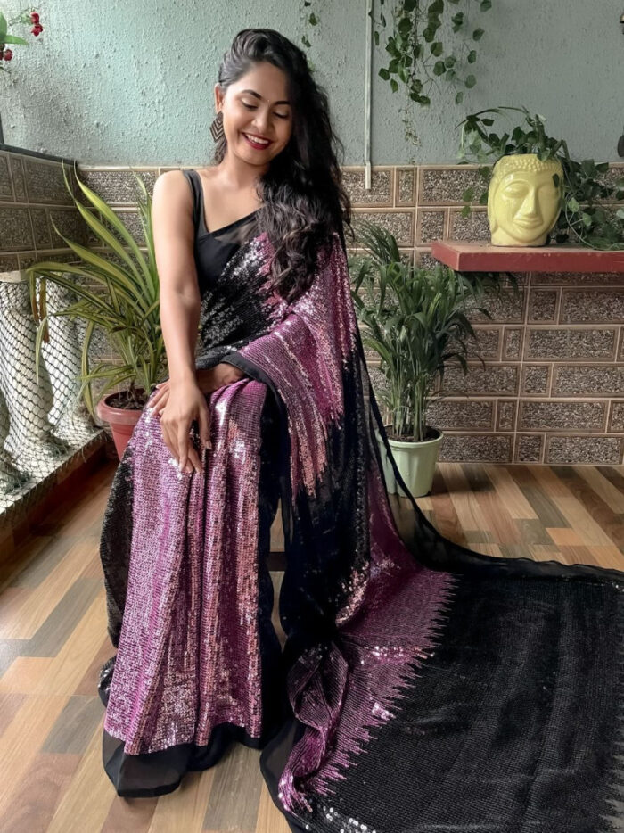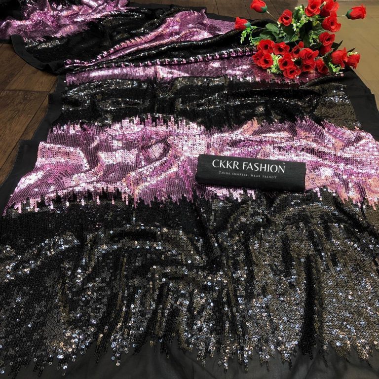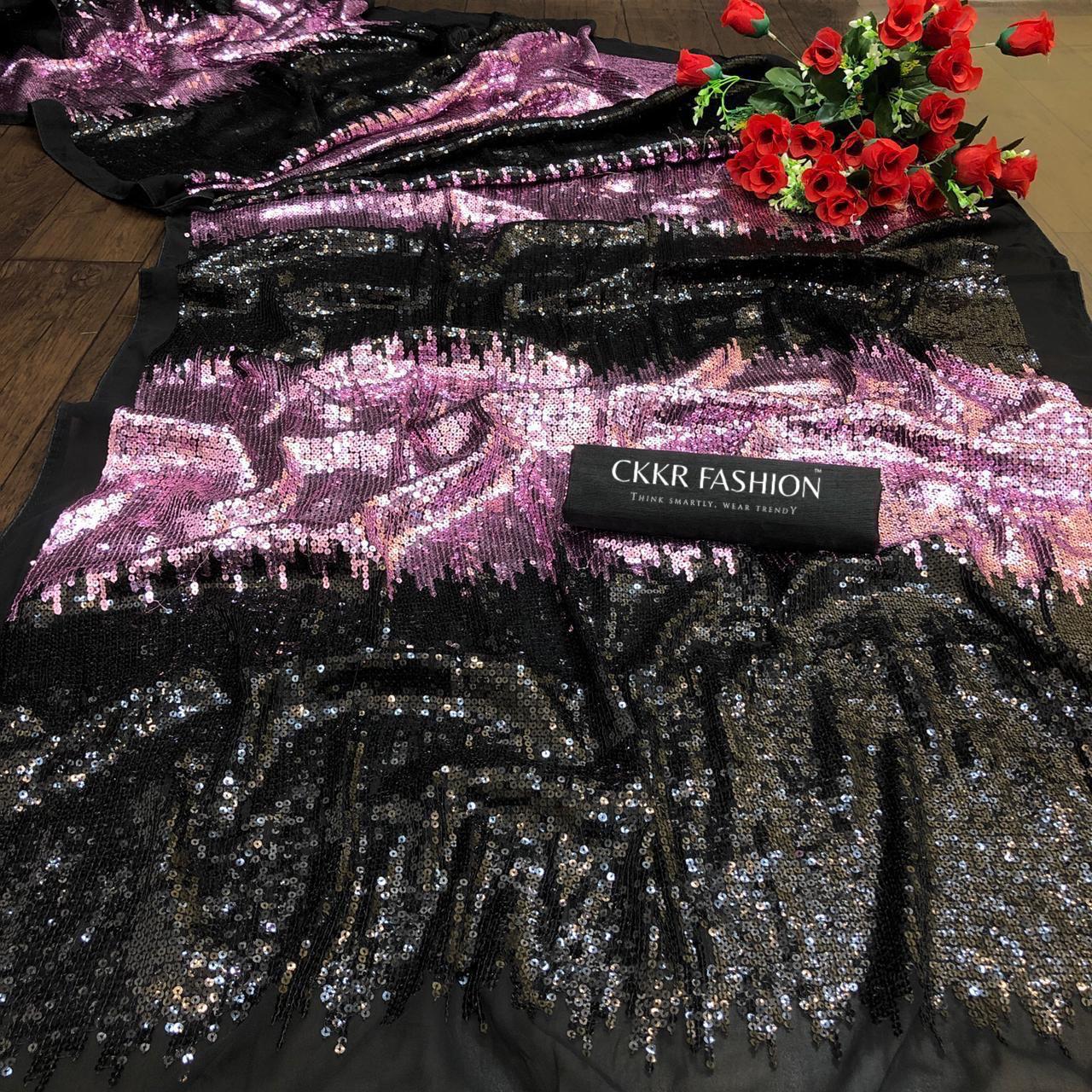 Georgette Saree With Full Sequence Work-Double Shade Light Pink And Black