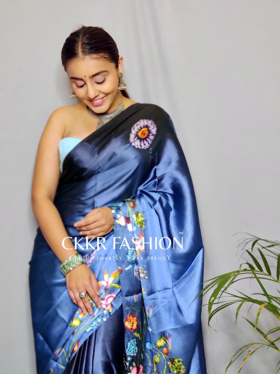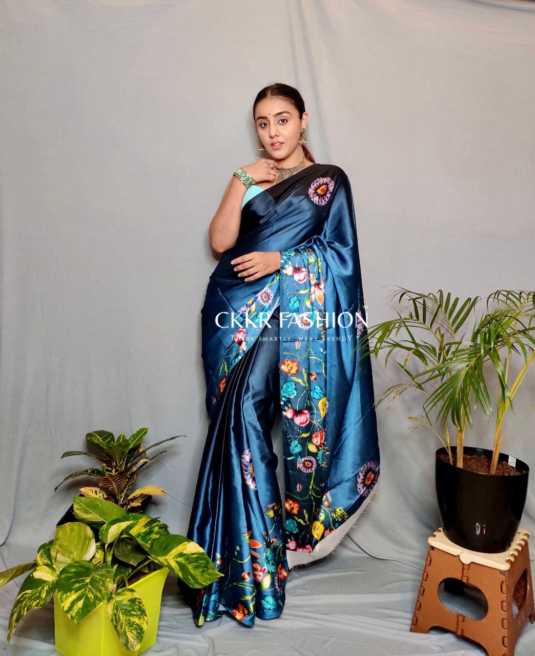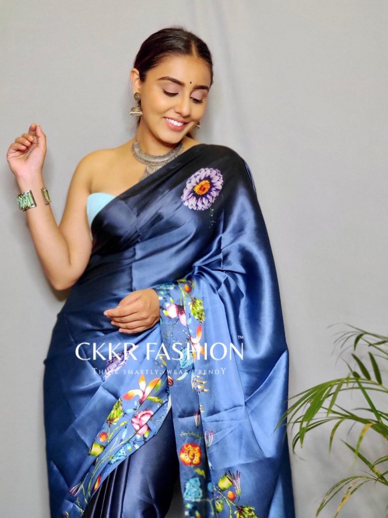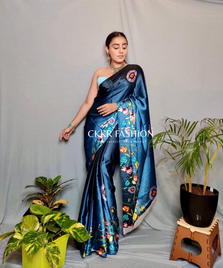 Spread the aura of freshness with this Satin Silk saree. This saree is made of Japan Satin Silk fabric which is highlighted with beautiful Digitally printed work which makes this saree more elegant. This Satin silk saree is versatile, light-weight, extremely soft. This Satin Saree manufactured using the ‘Satin’ weave, giving it a smooth, shiny, lustrous surface. This saree is paired with unstitched matching Bangalori Silk fabric blouse piece which can be stitched as per your requirement. This saree is comfortable to wear and care. You can wear this saree for regular social meets and other homely events. Pair it with stylish accessories to complete the look.