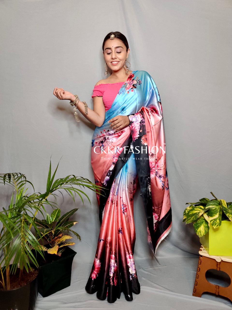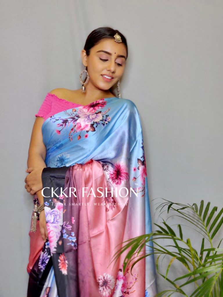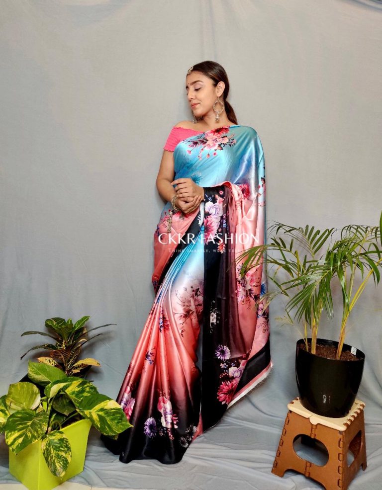 Spread the aura of freshness with this Satin Silk saree. This saree is made of Japan Satin Silk fabric which is highlighted with beautiful Digitally printed work which makes this saree more elegant. This Satin silk saree is versatile, light-weight, extremely soft. This Satin Saree manufactured using the ‘Satin’ weave, giving it a smooth, shiny, lustrous surface. This saree is paired with unstitched matching Bangalori Silk fabric blouse piece which can be stitched as per your requirement. This saree is comfortable to wear and care. You can wear this saree for regular social meets and other homely events. Pair it with stylish accessories to complete the look.