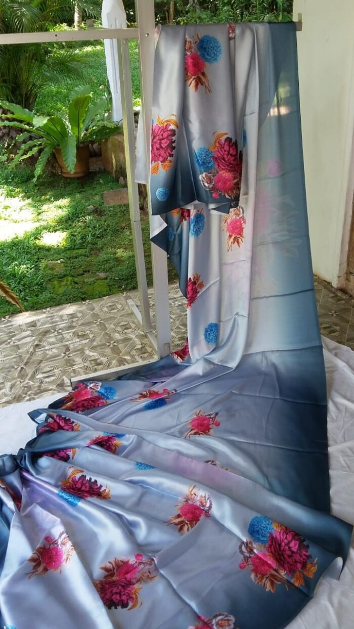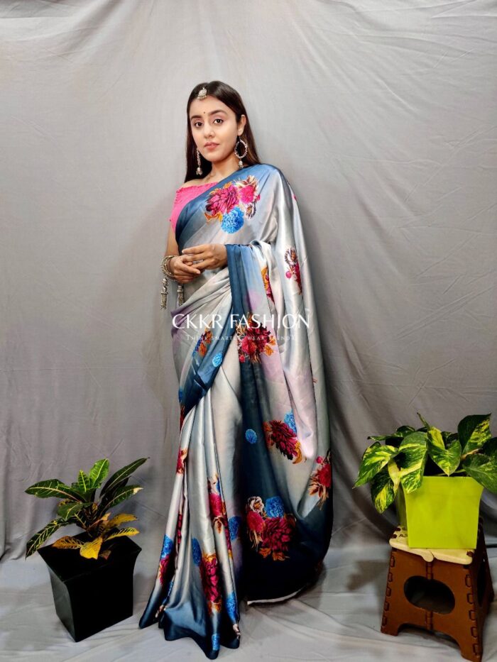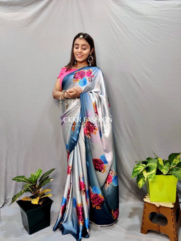 Spread the aura of freshness with this Satin Silk saree. This saree is made of Japan Satin Silk fabric which is highlighted with beautiful Digitally printed work which makes this saree more elegant. This Satin silk saree is versatile, light-weight, extremely soft. This Satin Saree manufactured using the ‘Satin’ weave, giving it a smooth, shiny, lustrous surface. This saree is paired with unstitched matching Bangalori Silk fabric blouse piece which can be stitched as per your requirement. This saree is comfortable to wear and care. You can wear this saree for regular social meets and other homely events. Pair it with stylish accessories to complete the look.