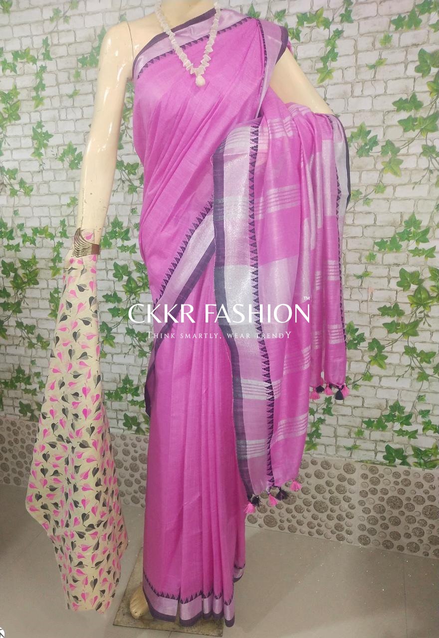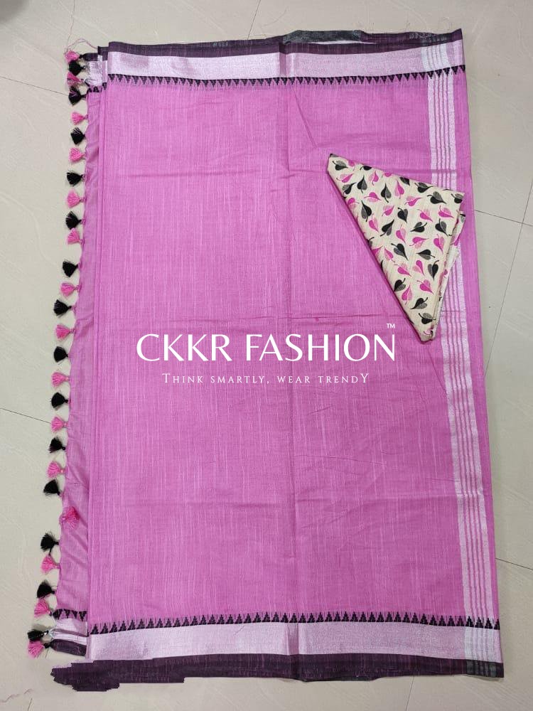 LINEN SAREE WITH TUSSLES
