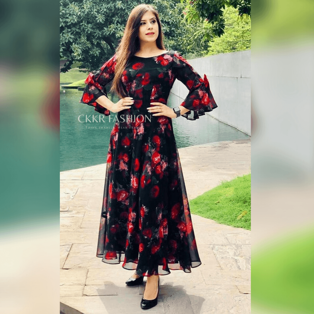 STYLE : Long Maxi Gown With Ruffle Sleeves