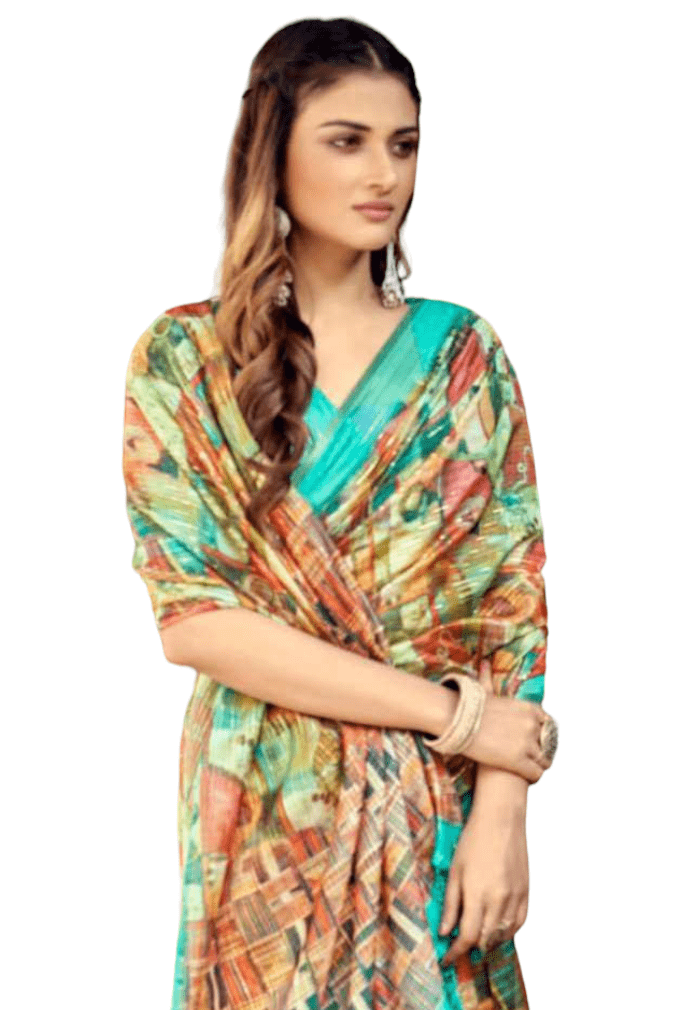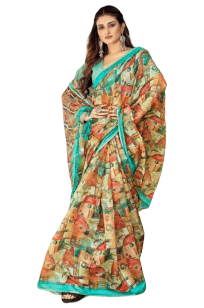 FANCY ORGANZA ZARI FABRIC SAREE DIGITAL PRINTED WITH FANCY LATKAN (TUSSLES) AND BLOUSE