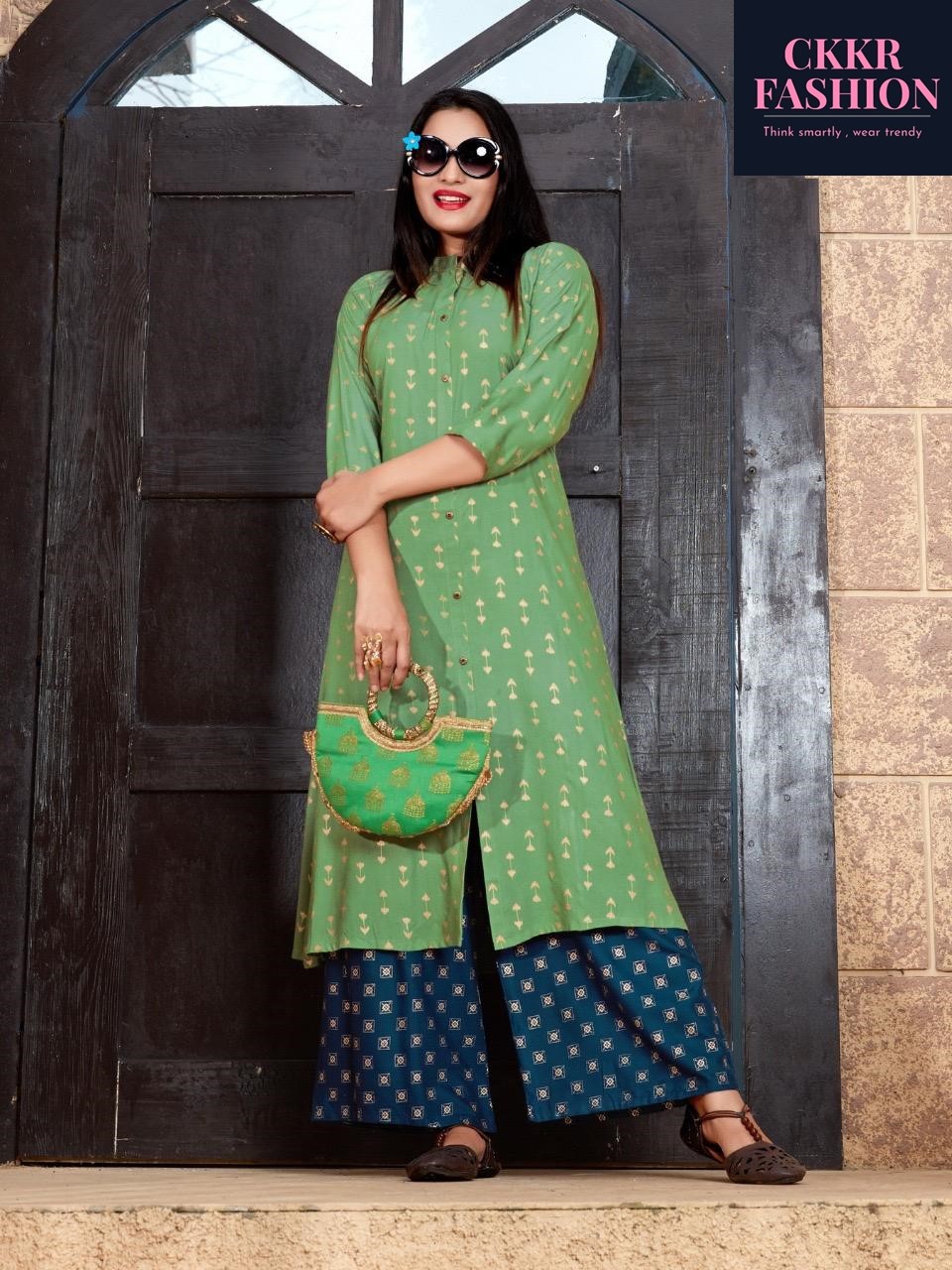 Designer Kurti With Palazzo Style in Palazzo special, designer Kurti With Pallazo, Kurti (Top) Fabric 14 Kg Rayon Foil Print and Pallazo 14 Kg Rayon Foil Print, Kurti Length: 46 Inches, Pallazo: 40 inches, Size: L 40 Inches XL 42 Inches. Hand washable.