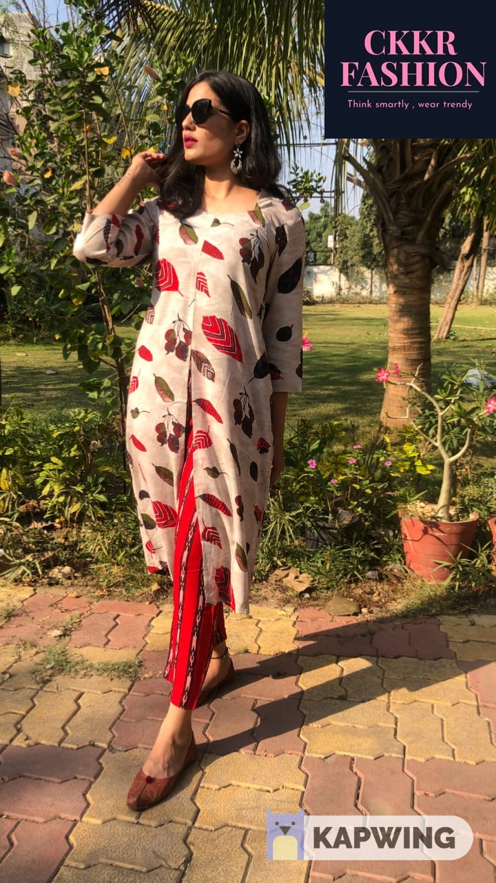 Designer Kurti With Palazzo Style in Palazzo special, designer Kurti With Pallazo, Kurti (Top) Fabric 14 Kg Rayon Foil Print and Pallazo 14 Kg Rayon Foil Print, Kurti Length: 46 Inches, Pallazo: 40 inches, Size: L 40 Inches . Hand washable.