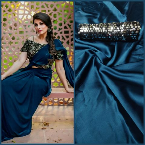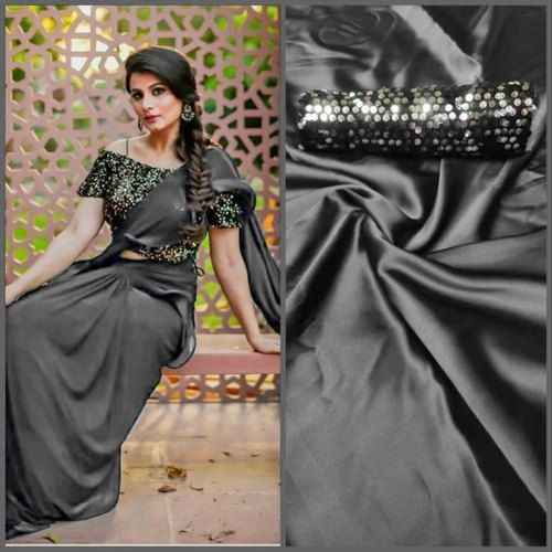 Exclusive Satin Silk Saree with Dual Color Sequence work blouse . All new color’s with rich look it’s simple plain saree with an modern look Saree length : 5.5 meter, Blouse : 0.8 mt