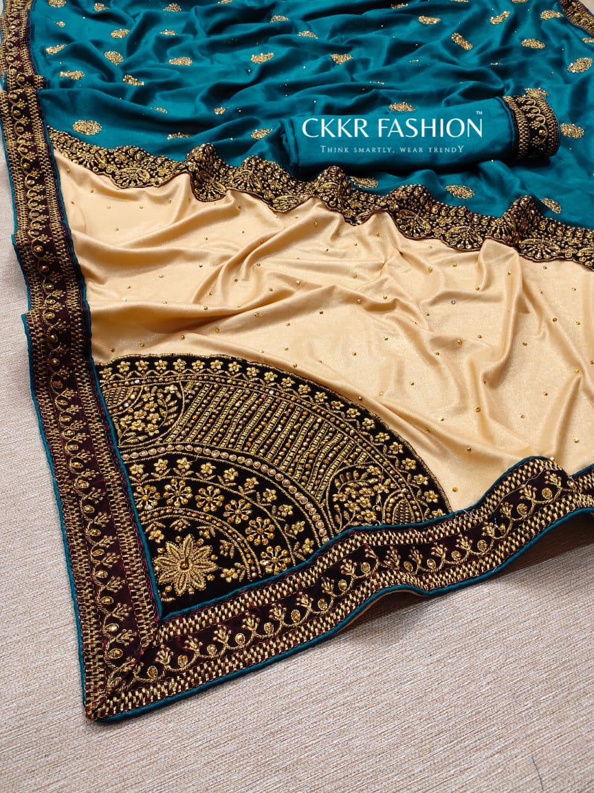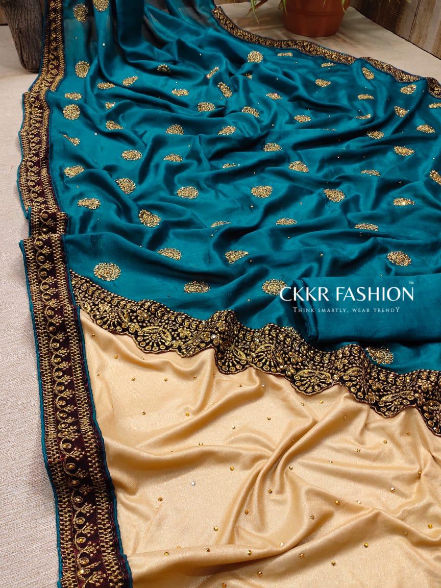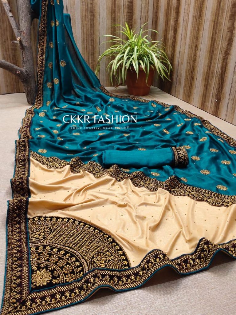 fancy Lycra silver coated fabric with Vichitra Silk full embroidery work saree with heavy