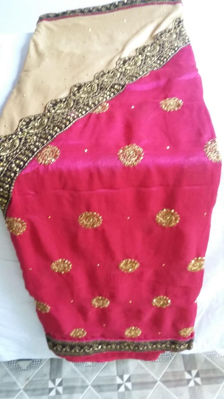 fancy Lycra silver coated fabric with Vichitra Silk full embroidery work saree with heavy